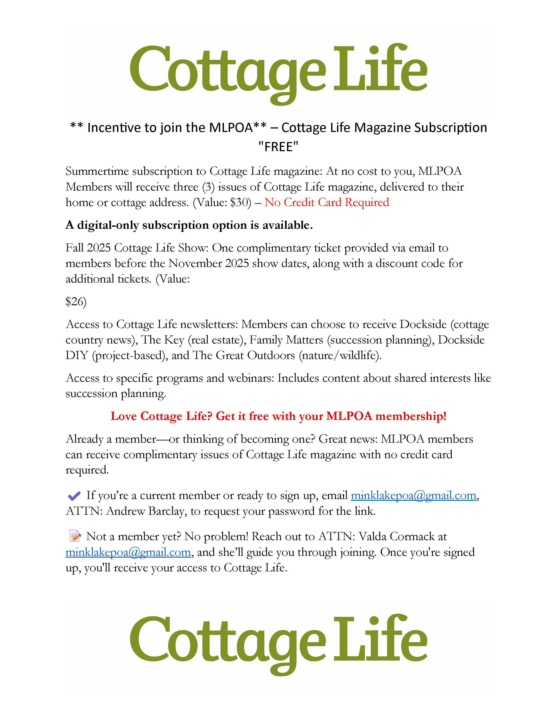 Mink Lake Property Owners Association (MLPOA) 2025-2026 Dues